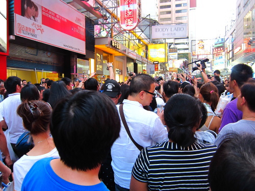 | 路上パフォーマンスに集まる香港の人達。 |