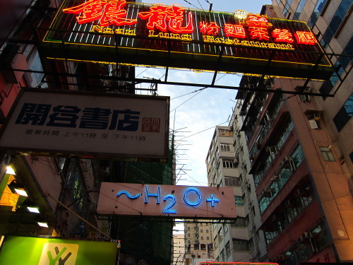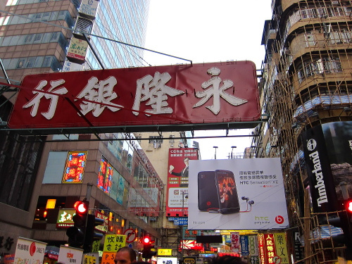 | モンコックの街にかけられている看板。見ていて楽しい。 |