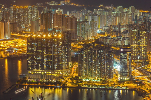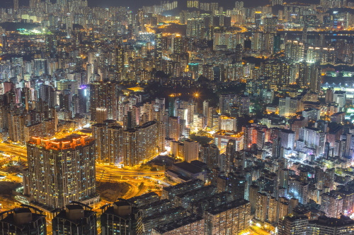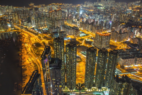| Sky100展望台から昂船洲の高層マンションを望む。 |