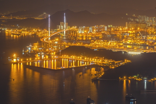 | Sky100展望台から昂船洲大橋を望む。 |
