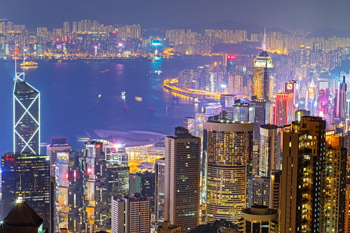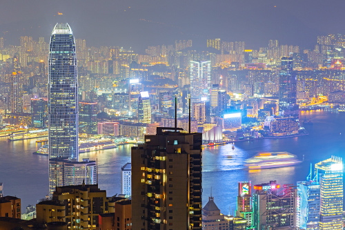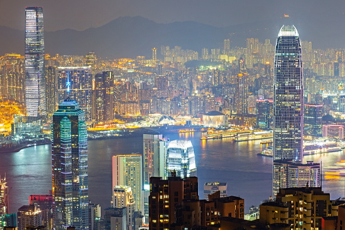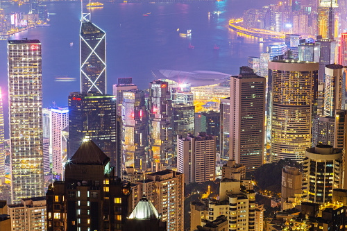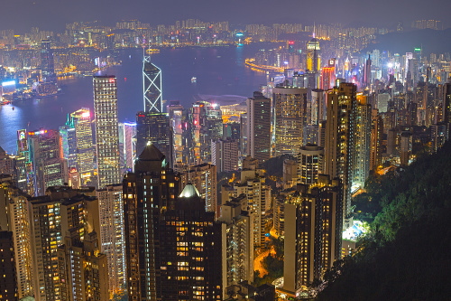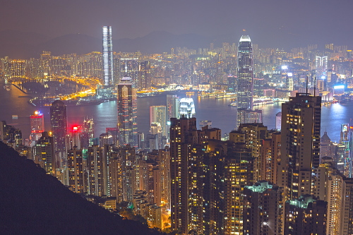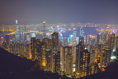 | 金鐘・灣仔方面の超高層ビル群の夜景を望む。 |