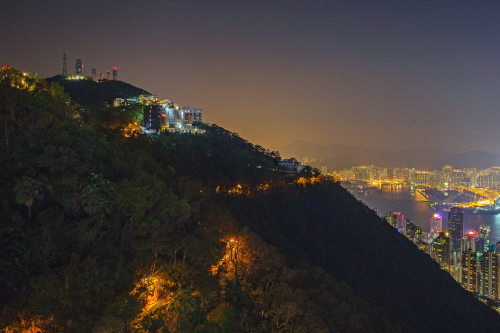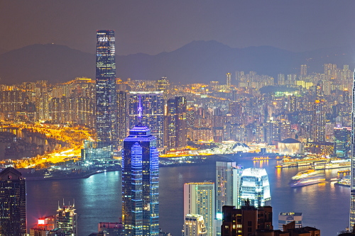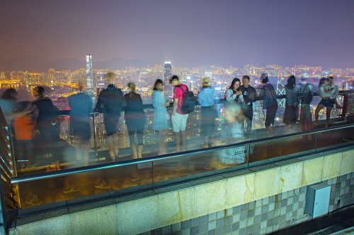 | 西九龍方面の超層ビル群の夜景を望む。 |
