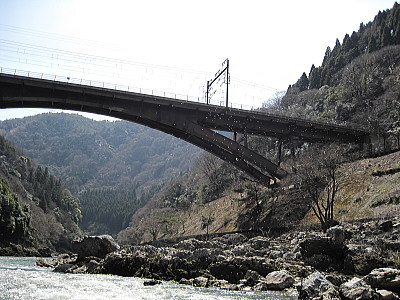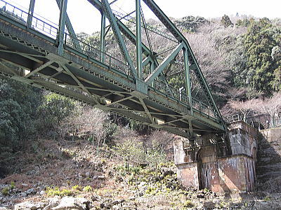 | トロッコ列車の鉄橋を見上げる。 |