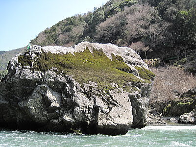 | 保津川下りでは一番大きい岩「孫六岩」。 |