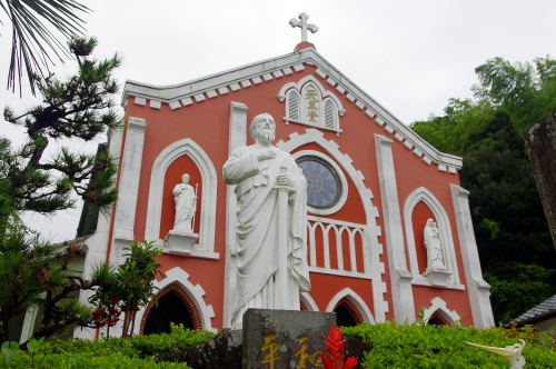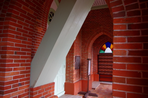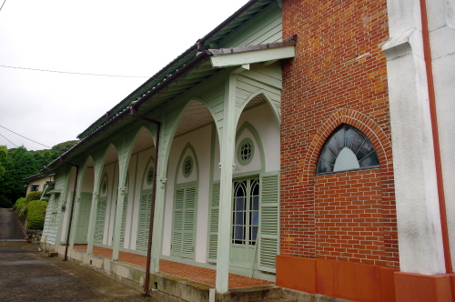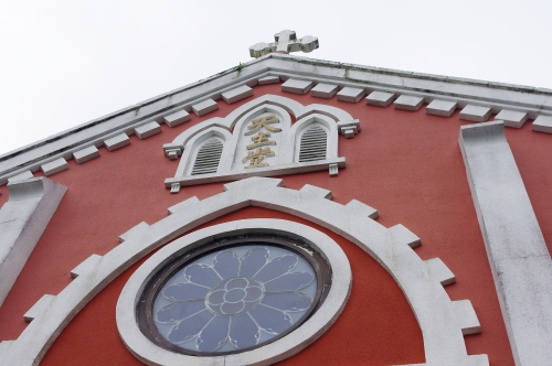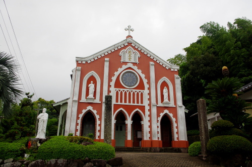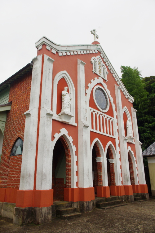 | 平戸市の中心街から南に走った宝亀地区にある小さな教会で、長崎県指定有形文化財である宝亀教会は木造で、正面は赤煉瓦造り・側面はバルコニーがあり独特の構造である教会です。ユネスコの世界遺産暫定リストへ掲載が決まった「長崎の教会群とキリスト教関連遺産」を構成する教会の一つでもあります。 |