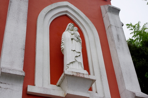 | 教会正面にあるフランシスコ・ザビエルの像。 |