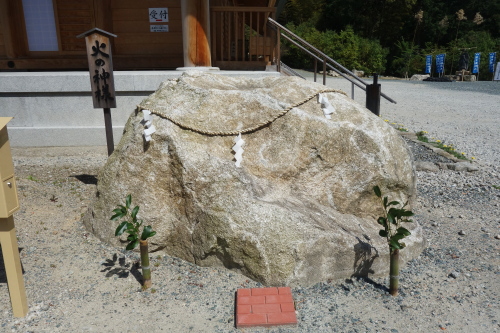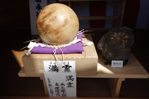 | 宝満神宮寺社殿前にある「満玉」と「菊紋石」。 |