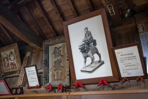 | 休憩所にある流鏑馬の額。 |