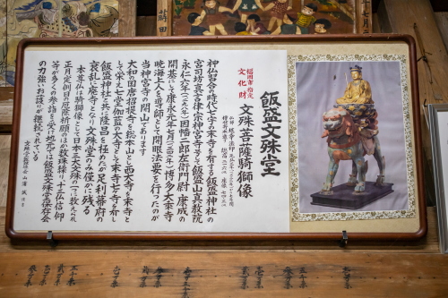 | 文殊堂内の雰囲気。福岡市指定文化財文殊菩薩の説明。 日本三大文殊の一つに数えられている。 |