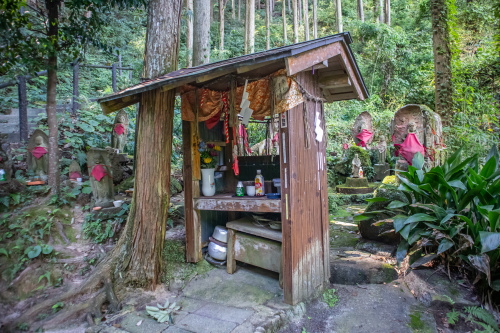 | 神宮寺跡にある薬師堂と十三仏。 |