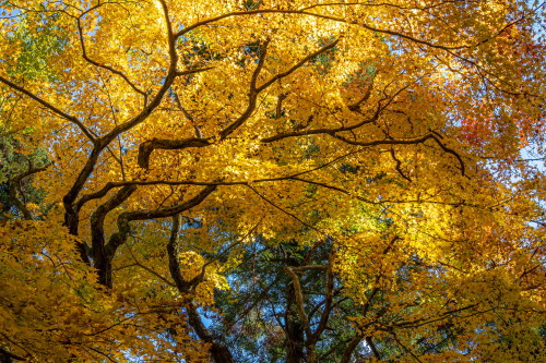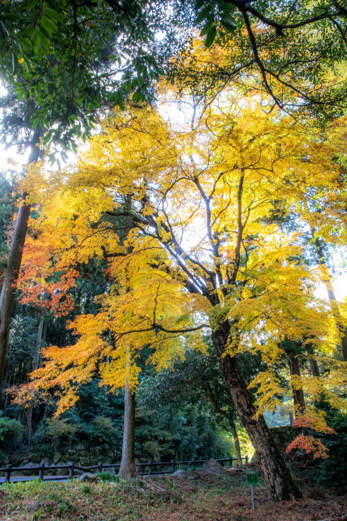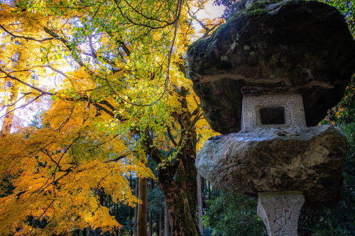 | 福岡県と佐賀県の県境・雷山のふもとにある雷(いかづち)神社は、創建は西暦70年と歴史がある神社で、主祭神は水火雷電神(瓊々杵尊)で、高祖大神(彦火火出見尊)、香椎大神(息長足姫尊)、住吉三神、八幡神の五神を祀る神社です。別名雷神宮(らいじんぐう)とも呼ばれます。境内には樹齢900年・県指定天然記念物である千年杉や樟の大木があります。紅葉シーズンになると大楓と銀杏の木が黄色の葉に紅葉して美しい姿を見る事が出来ます。 昔は雷山周辺には約300もの僧坊があったと伝えられており、明治維新の神仏分離令により雷神社にあった仲之坊は廃寺となり、本尊をはじめすべての仏像や古文書等は大悲王院に移されました。現在ではその面影は残されていません。 主祭神:水火雷電神(瓊々杵尊) |