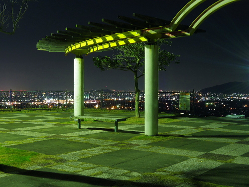 | 福岡市西区の閑静な住宅街の先に生松台中央公園があります。この付近はグラウンドなどの施設があります。小高い丘にあるこの公園からは福岡市の夜景を西から見ることができます。視界は約160度の視界で雰囲気がよく、福岡のシンボルである福岡タワーを中心にマリノアの観覧車を見ることができます。 |