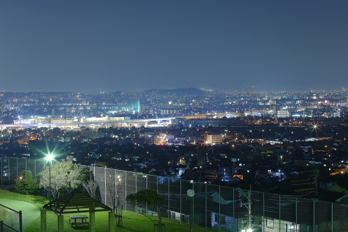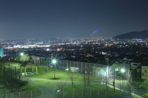 | 福岡市西区の閑静な住宅街の先に生松台中央公園があります。この付近はグラウンドなどの施設があります。小高い丘にあるこの公園からは福岡市の夜景を西から見ることができます。視界は約160度の視界で雰囲気がよく、福岡のシンボルである福岡タワーを中心にマリノアの観覧車を見ることができます。 |