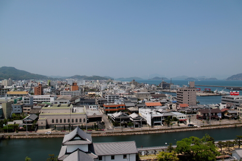 | 天守閣最上階から今治駅方面を望む。 |