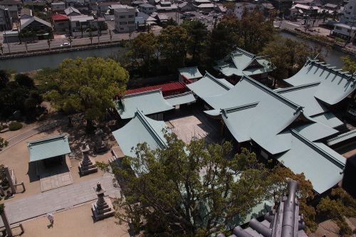 | 天守閣最上階から吹揚神社を見下ろす。 |