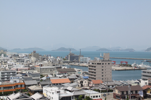 | 今治港と遠方に来島海峡大橋を望む。 |
