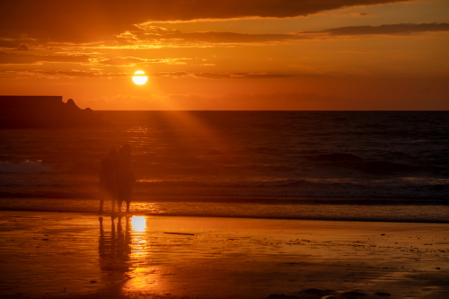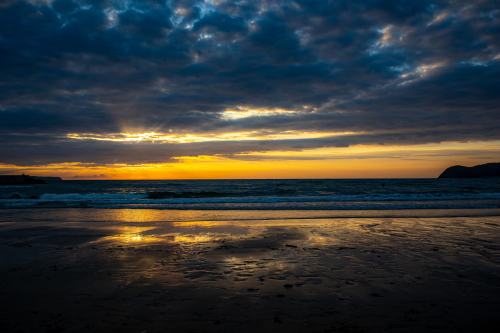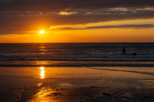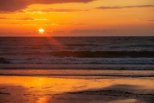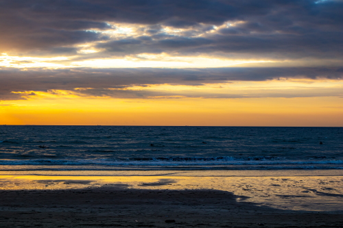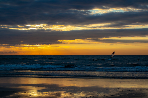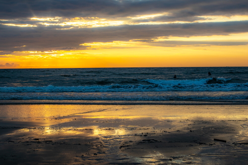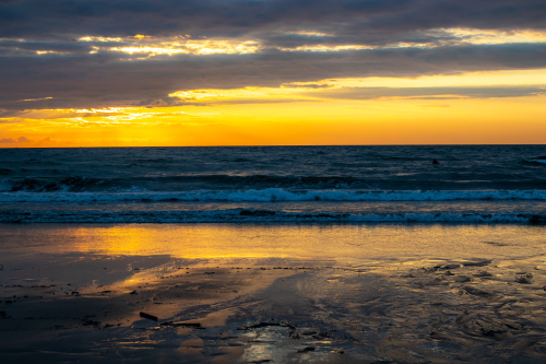 | 福岡県福津市には全長約3kmもの長さがある遠浅の海岸・砂浜があり、津屋崎海水浴場・宮地浜海水浴場・福間海岸で構成され、福岡県屈指のロングビーチでウインドサーフィン等のマリンスポーツのメッカでもあります。夕暮れ時になると美しいグラデーションの夕焼け空を観賞する事が出来ます。 またこの海岸では「かがみの海」とも呼ばれ、干潮時に砂浜が鏡のように空を反射して神秘的な光景があらわれ、簡単に写真撮影ができるとあってカメラマンを始め訪れた方は撮影する方が多いです。 駐車場:無料 |
