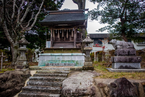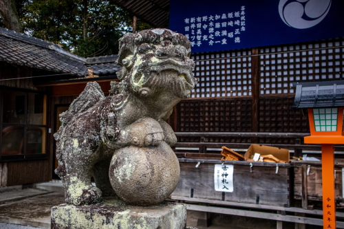 | 金富神社隣の湊公民館入口にある狛犬。 |