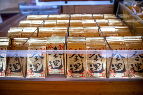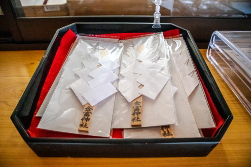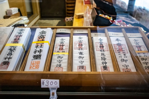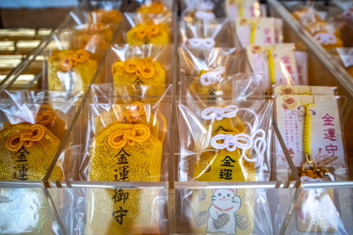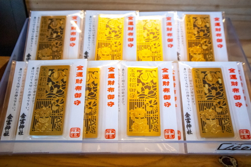 | 社務所で販売されている金運の御守。 |