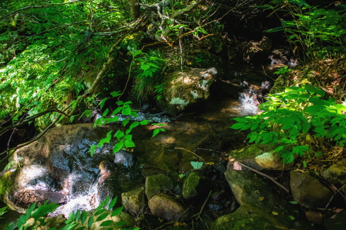 | 幻の滝に続く遊歩道沿いには小川が流れています。 |