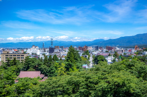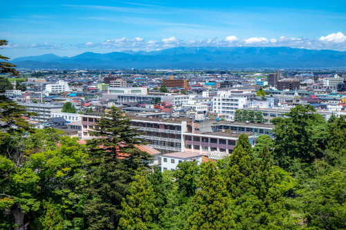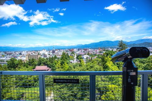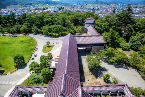 | 鶴ヶ城天守閣最上階・展望台からの眺め(北方向)。 |