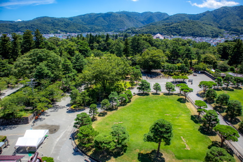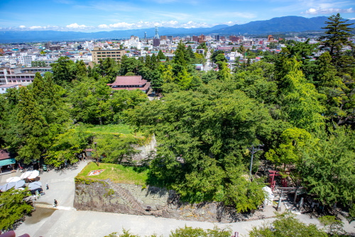 | 鶴ヶ城天守閣最上階・展望台からの眺め(南方向)。 |