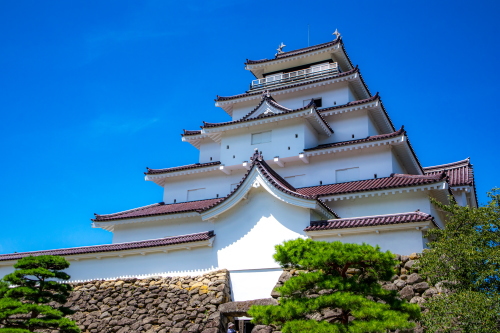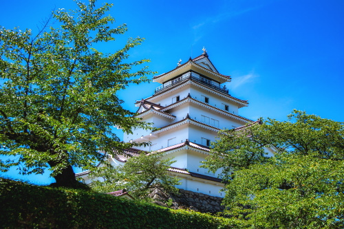 | 会津若松市のシンボルである鶴ヶ城は、別名若松城や黒川城・会津城などとも呼ばれ城郭構造は梯郭式平山城で、1384年に葦名直盛が館を築いたのが始まりで、天守構造は1593年には望楼型7重竣工されて「鶴ヶ城」と改名し、1611年に発生した会津地震で倒壊後は層塔型5重5階地下2階で再建した後、幕末の会津戦争後は廃城になり解体され、1965年に層塔型5重5階RC構造で再建され、内部は「若松城天守閣郷土博物館」として公開されていています。 2011年には年には「赤瓦」へのふき替えが完了し、幕末当時の姿を再現し、現存する天守閣では国内唯一の赤瓦の天守となっています。また鶴ヶ城公園内は約69,000坪の敷地があり国の史跡に指定されています。 開館時間:8:30〜17:00 (最終入館は閉館の30分前まで) 休館日:無休 入場料: 一般 410円 (天守閣・麟閣共通券 大人520円) 小中学生 150円 駐車場:普通車360台(有料) ※鶴ヶ城西出丸駐車場、鶴ヶ城南口駐車場、 鶴ヶ城東口駐車場の3か所 |