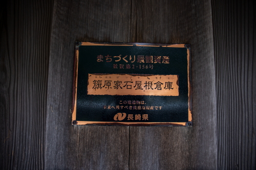 対馬市の南西部・椎根地区には瓦より堅固な石材が建物の屋根として使用した倉庫があり、この厚い砂岩の板石は浅海の島山から運んだと言われています。この石屋根は倉庫で使われる事が主で人家には使用せず、衣類の櫃と穀類の俵等が格納されていたとされています。