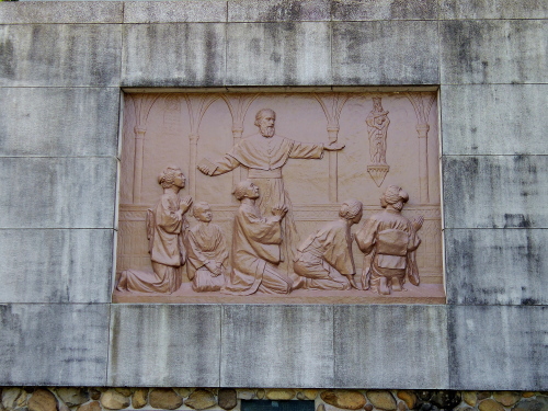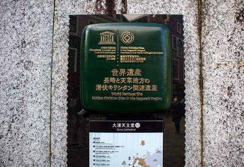 | 大浦天主堂敷地内にある信徒発見のレリーフ。 |