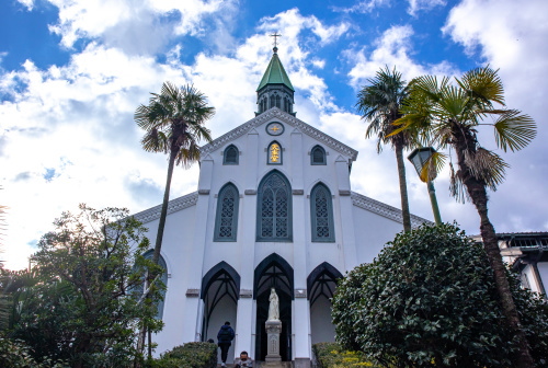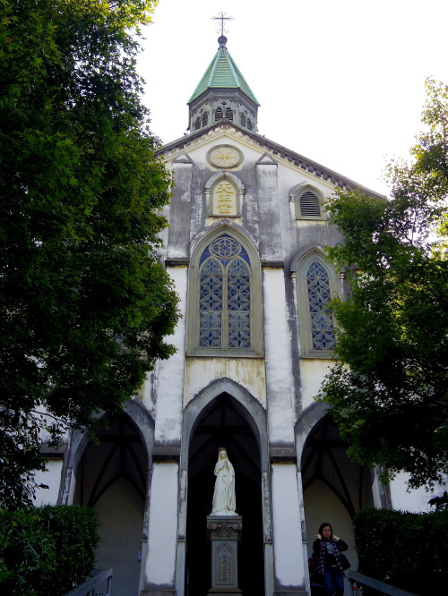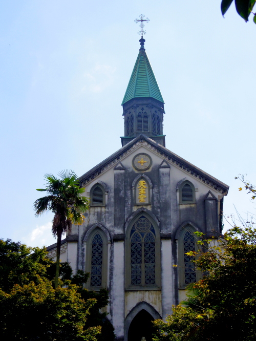 | 大浦天主堂は中世ヨーロッパ建築を代表するゴシック調の教会で、現存する日本最古の教会建築であり、正式には「日本二十六聖殉教者聖堂」と言い、1862年に二十六人の殉教者たちが聖人に列せられたのを受けて捧げられた教会。1945年の長崎原子爆弾にも耐え、幾度の改修を得て現在に至ります。 昭和8年に旧国宝に指定され、また戦後の1953年には国宝に指定され、また2007年にユネスコの世界遺産(文化遺産)暫定リストへ掲載が決まり、2018年に登録が決まった「長崎と天草地方の潜伏キリシタン関連遺産」を構成する文化財の1つです。歴史は古く、1863年に着工・1864年に竣工され、設計者はフランス人のヒユーレ師・建築者は日本人の小山秀と記録されてます。 |