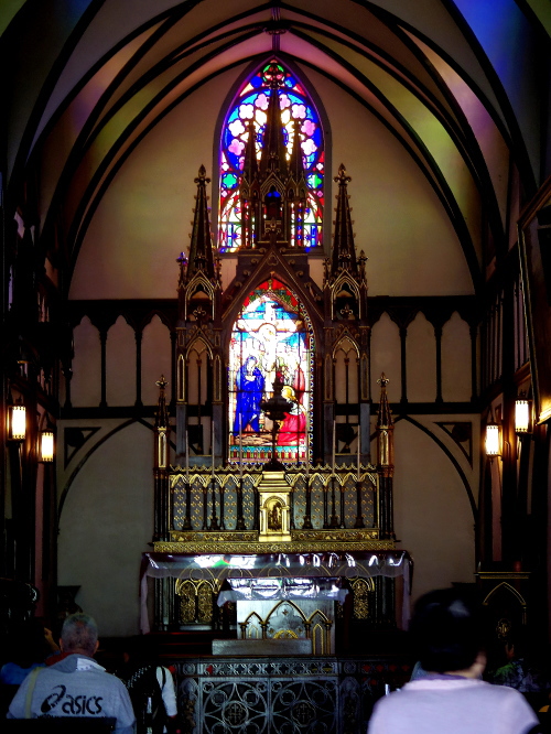 | 大浦天主堂の祭壇とステンドグラス。 |