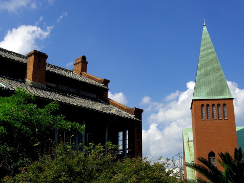 | 大浦天主堂から大浦天主堂司祭館を望む。 |