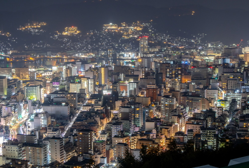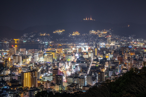 | 矢太樓本館・展望デッキから長崎市中心部の夜景を望む。 |
