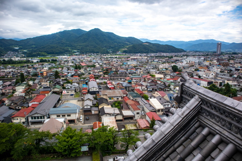 | 上山城郷土資料館最上階・展望台から上山市街を望む。 |