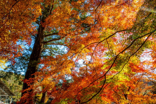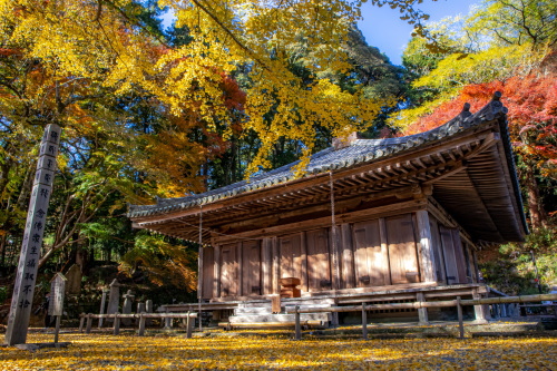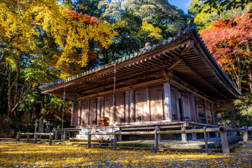 | 豊後高田市の山間部にある天台宗の寺院・富貴寺は718年に仁聞菩薩により開基したとされる歴史がある寺院で、山号を蓮華山と称し御本尊は阿弥陀如来の寺院です。富貴寺境内にある富貴寺大堂は、宇治平等院鳳凰堂、平泉中尊寺金色堂と並ぶ日本三阿弥陀堂のひとつに数えられ、近畿地方以外に所在する数少ない平安建築の一つとして貴重な存在であり、1952年11月22日に国宝に指定され、2013年10月17日には、富貴寺境内が史跡に指定されています。 2021年現在、期間限定で富貴寺大堂阿弥陀三尊像御開帳が行われており、本尊の阿弥陀如来坐像は一体の姿で長年親しまれてきましたが、富貴寺本堂の改修に伴って脇侍(わきじ)の観音菩薩と勢至菩薩を伴った「阿弥陀三尊像」の姿で約100年ぶりの本来の姿が拝める様になっています。 また富貴寺は紅葉が美しいとされ、11月下旬〜12月上旬には美しい紅葉を楽しむ事ができ、また夜間にはライトアップされます。 開門時間:8:00〜16:30 拝観料:500円 御本尊:阿弥陀如来 |