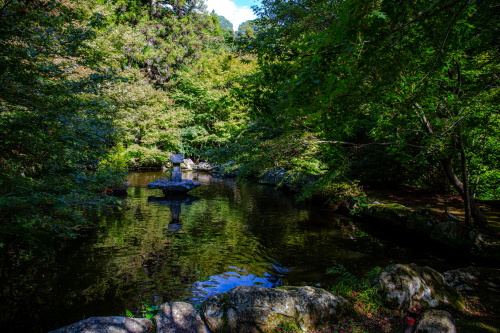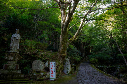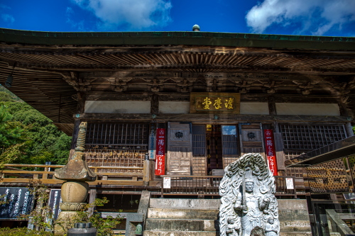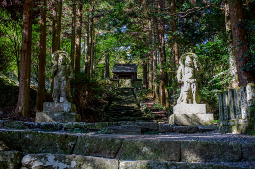 | 天台宗別格本山の寺院である両子寺は、国東半島のほぼ中心にある両子山の中腹にある寺院で、718年に仁聞菩薩によって開創されたと伝えられる六郷満山の中山本寺で修行の中心地として栄え、江戸時代には杵築藩の最高祈願所となり、六郷満山の総持院として満山を統括する歴史があります。山門に続く石段の両脇には、江戸後期の作とされる国東半島最大級(総高245cm、像高230cm)の石造の金剛力士像があります。また国東六郷満山霊場第13番・九州西国三十三箇所第6番札所でもあります。 護摩堂から山の方に続く坂道の参道を進むと、1991年に再建された大講堂や1846年に旧杵築藩主松平候の寄進により断崖絶壁に造られた奥の院があり、様々な神仏が安置され信仰されています。御利益として子授け・安産・家内安全の祈願で信仰がある寺院でもあり、秋になると紅葉が美しい紅葉スポットとしても有名なところです。 御本尊:阿弥陀如来 拝観料:200円 |