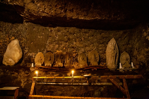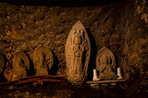 | 奥の院岩屋洞窟の雰囲気。千手千眼観世音菩薩と愛染明王。 |