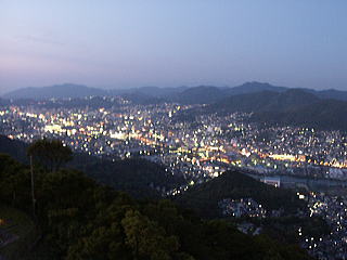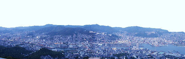 | 稲佐山から見た長崎市街地(合成しました)。中央右が長崎中心街。 中央付近にJR長崎駅・左側は浦上地区(平和公園)になります。 |