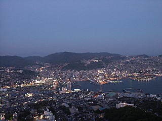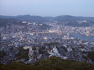 | 日没して20分後の長崎中心地区の夜景。日本三大 夜景と言われるだけあって美しいです。 |