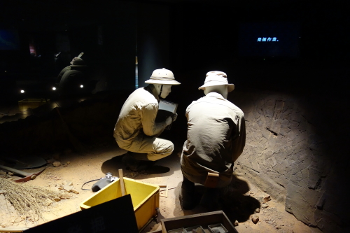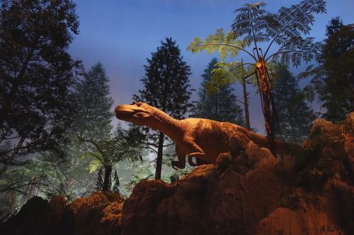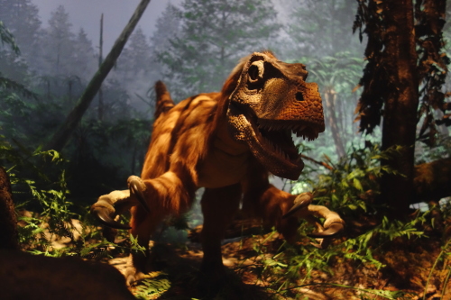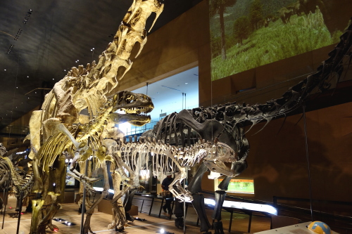 | アースモールの恐竜の等身大全身骨格の展示。 |