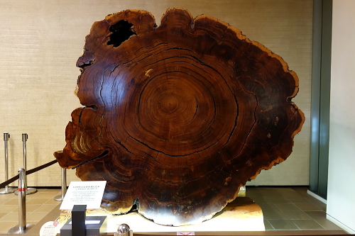 | 入口ゲートすぐにある大木の断面。 |