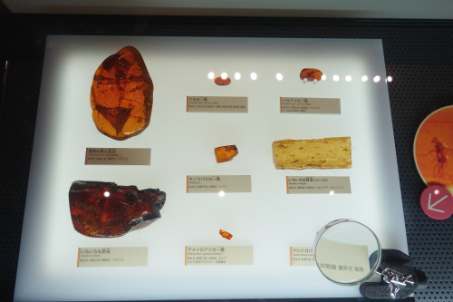 | 琥珀内に入っている昆虫の展示。 |