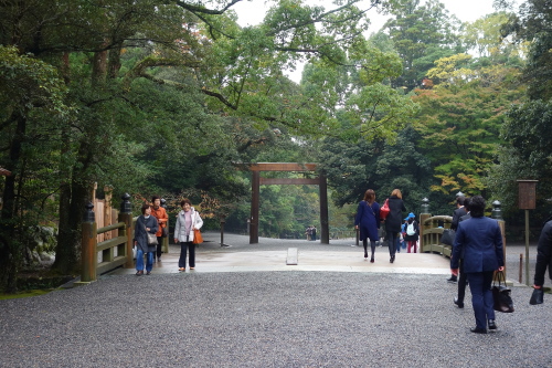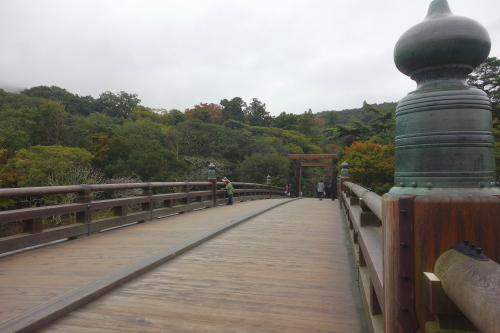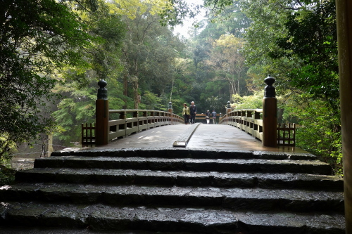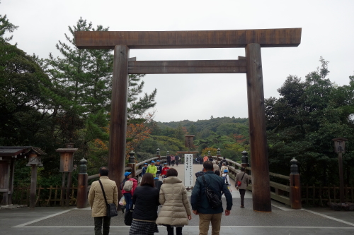 | 伊勢神宮内宮・宇治橋。触れると開運になるそうです。 |
