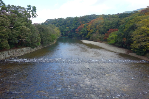 | 伊勢神宮内宮・宇治橋から五十鈴川を見る。 |