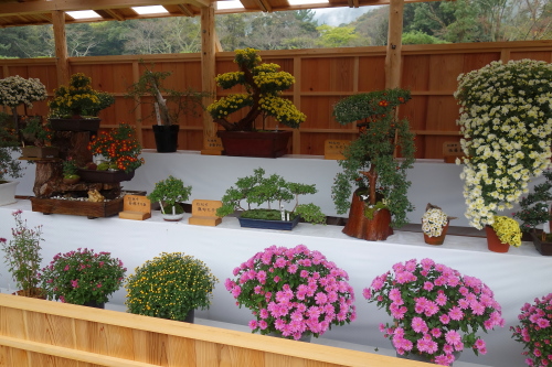| 伊勢神宮内宮・参道沿いには盆栽が飾られていました。 |