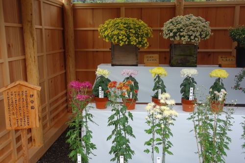 | 伊勢神宮内宮・参道沿いには伊勢菊が飾られていました。 |