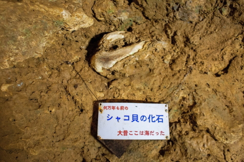 | 石垣島鍾乳洞・シャコ貝の化石。 |
