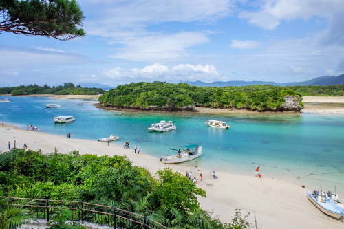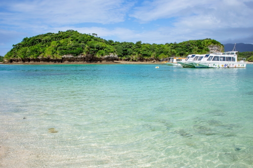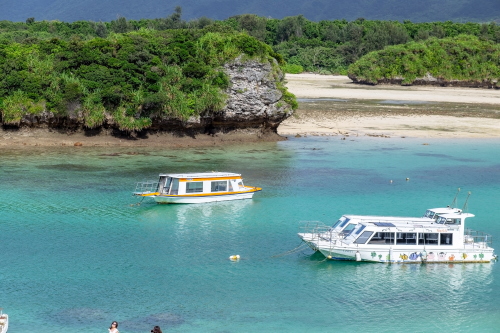 | 石垣島北部・川平地区にある白い砂浜とコバルトブルーの透明度が高く美しい湾で、グラスボートも出港している石垣を代表する観光地になっています。展望台も設置されており、川平湾の美しい風景を眺める事も出来ます。川平湾ではグラスボートに乗船して海底観察をするのをおススメします。乗船の際は割引チケットがレンタカーを借りた際に付いているので使用すると割引を受けられます。 なお、駐車場はそこそこ広いもので有料になります。 |