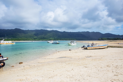| 砂浜から川平湾を望む。 |