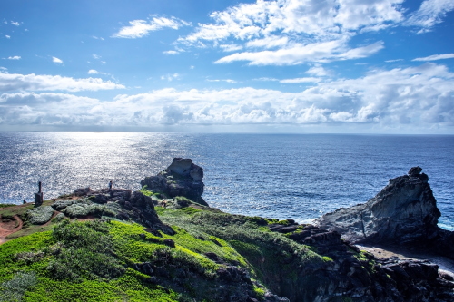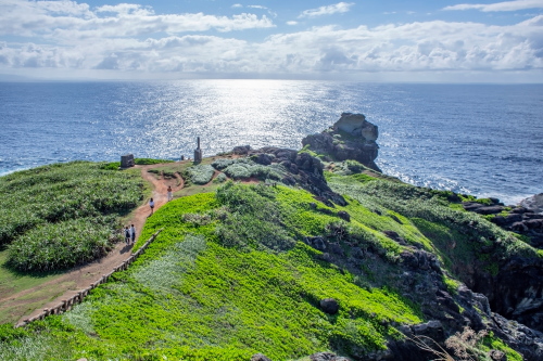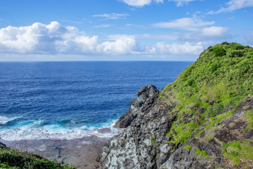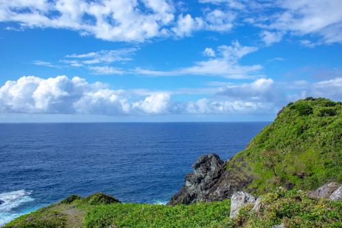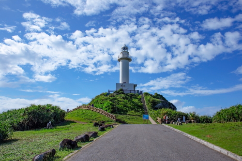 | 御神崎は石垣島北西部にある御神崎半島の北にあります。白い灯台と東シナ海を一望できる景勝地で、夕日の名所として観光客で賑わう観光スポットです。灯台下の展望スポットからは東シナ海と水平線が広がり、遠くに西表島を眺目る事が出来ます。また周辺は断崖絶壁で荒々しい岩・海でもあります。 |